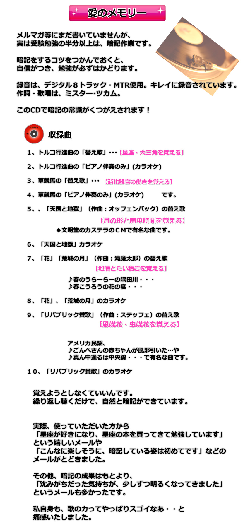 『愛のメモリーー』 全10曲・(約15分間)